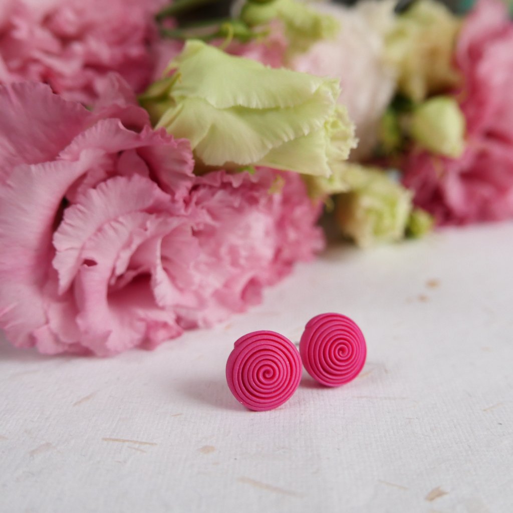 Ručně modelované náušnice ve tvaru spirálek jsou velké 10 - 11 mm.